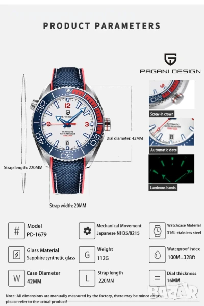 PAGANI DESIGN автоматичен часовник SEIKO NH35, сапфир, неръждаема стомана, водоустойчив, дата, безел
