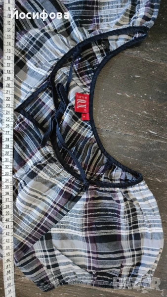 Прекрасна лека и прохладна дамска блузка, р-р S, каре - черно, лилаво & бяло.