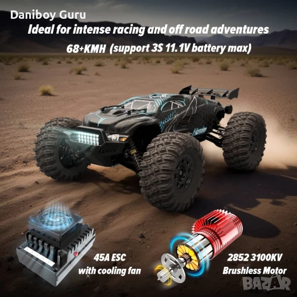 Медни намотки с висока чистота увеличават ефективността, прецизно проектирани за максимално преобразуване на енергия. RC автомобилът с голям размер 1:10 може да поддържа 3S 11,1 V батерия макс.