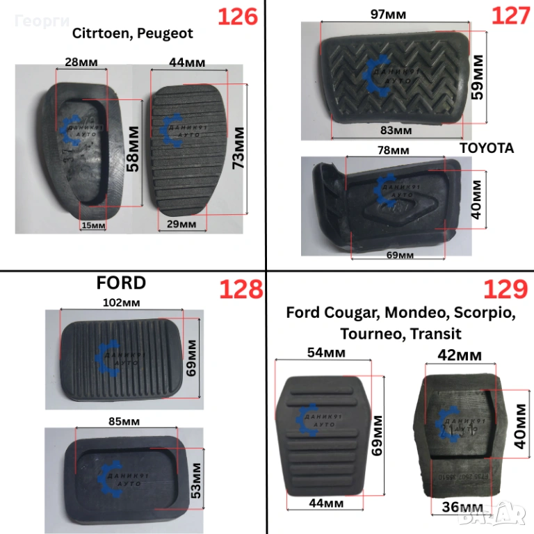 128. Гумичка за педал спирачка Ford Automatic - 69 х 102мм - 10,00 лв. ( 5,11 € )