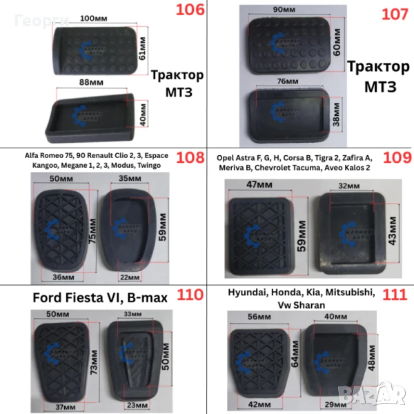 111. Гумичка за педал Hyundai, Honda, Kia, Mitsubishi, Vw - 64 х 56 х 42мм - два броя к-т - 11,00 лв. ( 5,62 € )