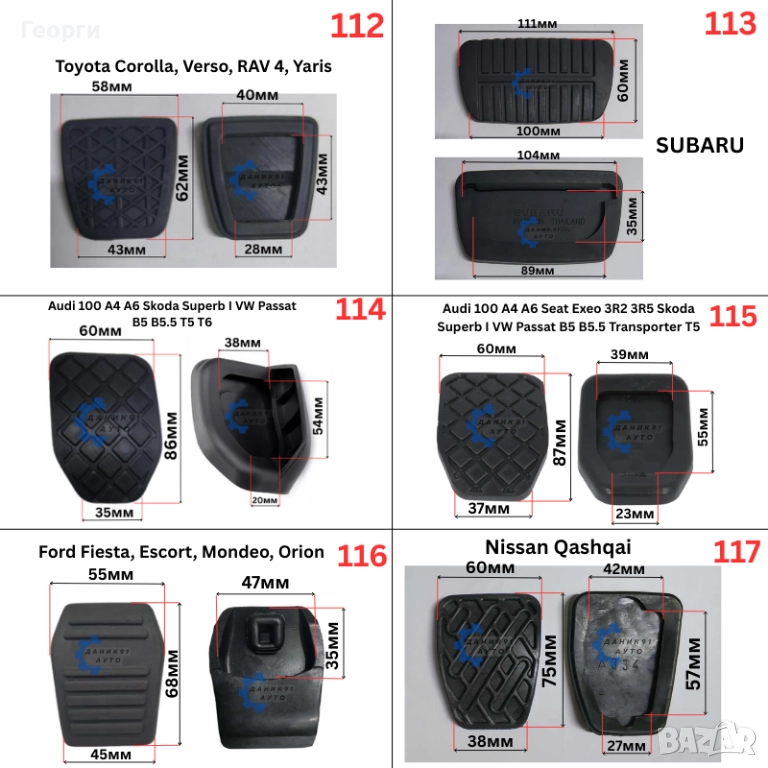 112. Гумичка за педал Toyota Corolla, Verso, RAV 4, Yaris - 62 х 58 х 43мм - два броя к-т - 12,00 лв. ( 6,14 € )