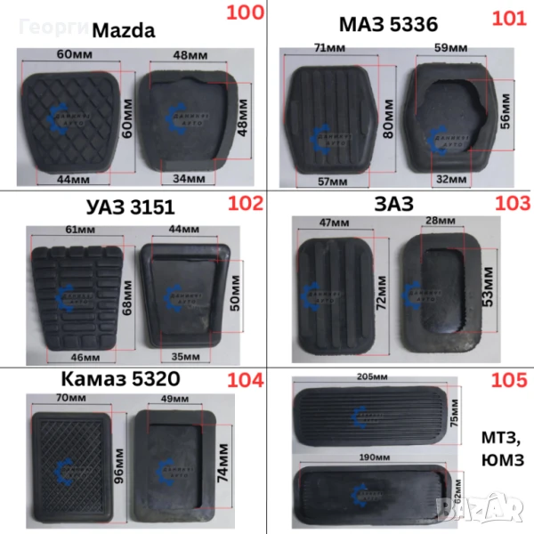 104. Гумичка за педал Камаз 5320 - 96 х 70мм - 8,00 лв. ( 4,09 € )