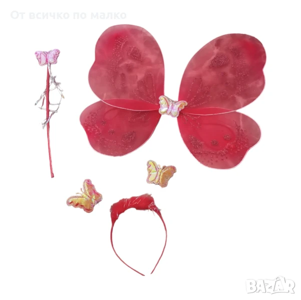 Комплектът съдържа крила на пеперуда, диадема и жезъл.
