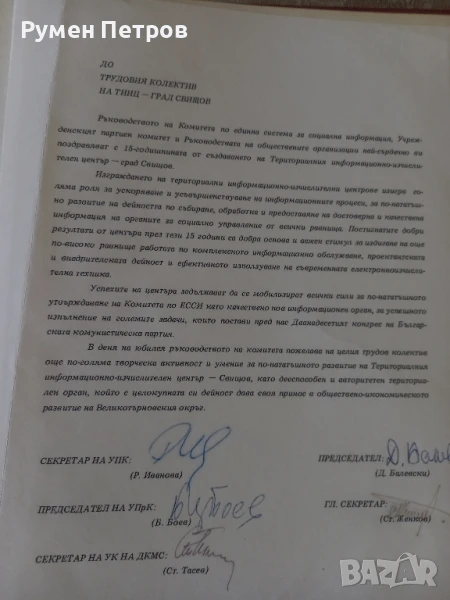 Поздравителен адрес,, ДКМС, Свищов. → Обява 51144241