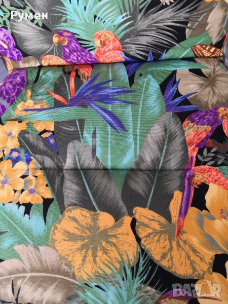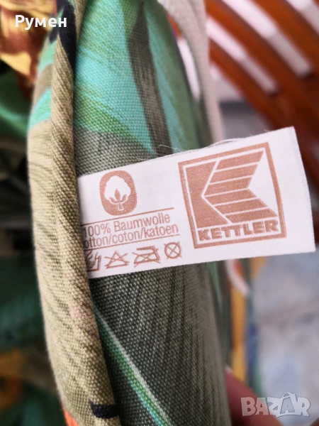 Комплект от 2 броя възглавници за градински столове с нисък гръб, 90/45/4 см, неизползвани. Декор Папагал-джунгла, на Kettler, 100 % памук.