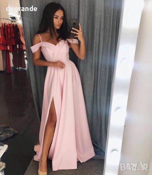Дамска дълга рокля налична в черно червено и цвят пудра, снимка 1 - Рокли - 51145247 Дамска дълга рокля налична в черно червено и цвят пудра, снимка 2 - Рокли - 51145247 1/2
