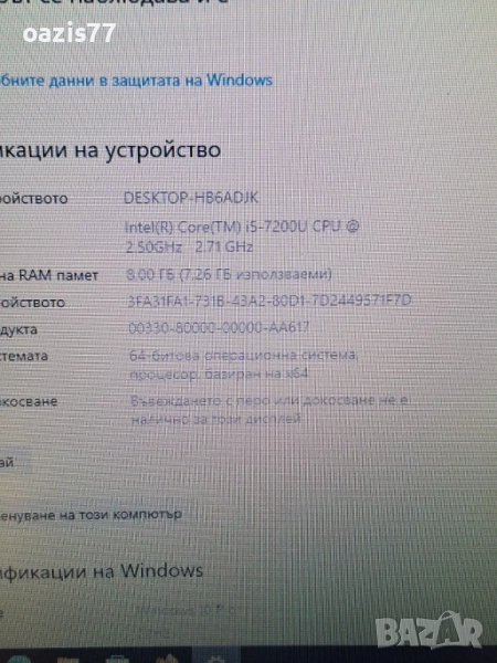 Процесор i5 7200u Запазен.