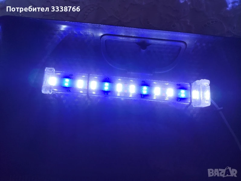 Осветлението също е преправяно поради факта че не успях да намеря резервна лампа на марката ,а в момента е с китайска лампа ( вързана със свински опашки) пак от aquarium.bg ( около 20 кинта струва и държи около година и нещо по спомен е 9 w при мен бе супер за криптикорини, микрозорум и други по непретенциозни видове водни растения)