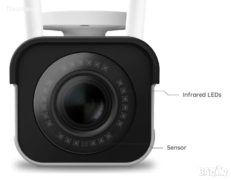 • Инфрачервено (IR) нощно виждане с 4 IR LED диода на честота 850 nm също до около 30 м .