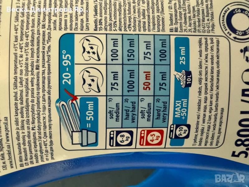 Течен препарат за пране Persil Deep Clean Active Gel, 116 пранета 5, 8 L, снимка 1 - Перилни препарати и омекотители - 51147124 Течен препарат за пране Persil Deep Clean Active Gel, 116 пранета 5, 8 L, снимка 2 - Перилни препарати и омекотители - 51147124 Течен препарат за пране Persil Deep Clean Active Gel, 116 пранета 5, 8 L, снимка 3 - Перилни препарати и омекотители - 51147124 Течен препарат за пране Persil Deep Clean Active Gel, 116 пранета 5, 8 L, снимка 4 - Перилни препарати и омекотители - 51147124 Течен препарат за пране Persil Deep Clean Active Gel, 116 пранета 5, 8 L, снимка 5 - Перилни препарати и омекотители - 51147124 1/5