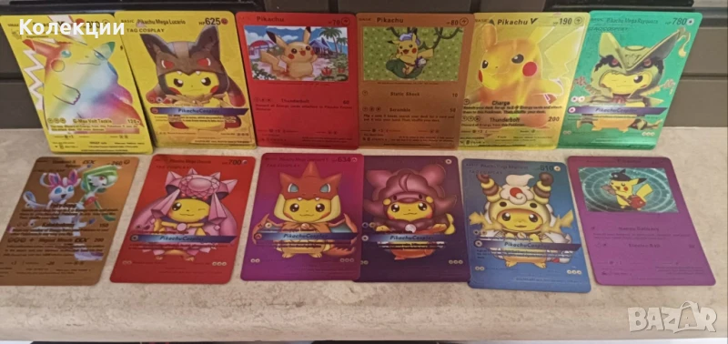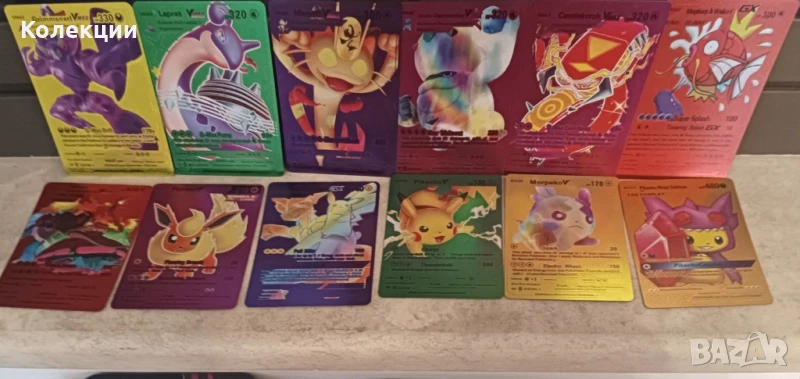 Шарени карти на Покемон Pokemon.Картите са от специална пластмаса и част от моята колекция.Те са перфектни за подарък за вашето дете или за фен на Покемон.Цената е за една карта.При покупка на една или повече от тези карти,ще има бонус.