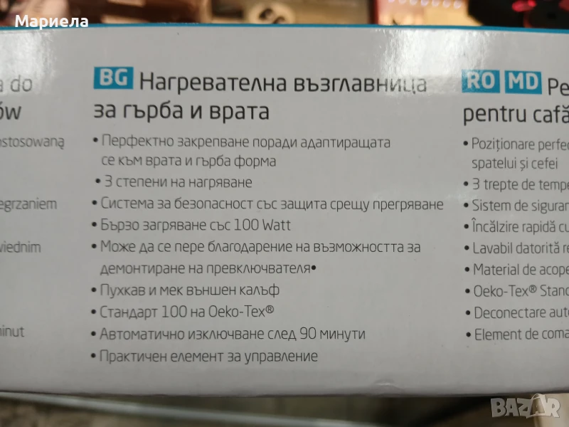 Материя: Oeko-Tex Standard 100 - текстилна, органична материя, без вредни вещества Обхват на приложение: Врат, Болки в гърба, Напрежение в мускулите, Ревматични болки.