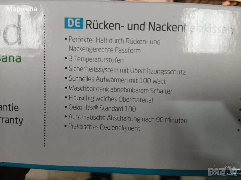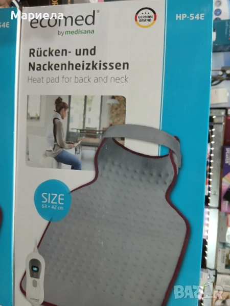 Електрическата грейка Ecomed HP-46E се откроява с изключителна топлина и удобство, които може без проблем да осигури на Вашите уморени гръб и рамене. Тя помага за облекчаване на напрежение в рамената, болки в гърба и шията. Благодарение на голямата си мощност, загрява бързо и се изключва автоматично след 90 минути, за да Ви осигури допълнително спокойствие. Грейката позволява лесна поддръжка, почистване и изпиране, благодарение на подвижния термостат. Нововъведение за новото поколение одеяла и грейки на Medisana e спечелването на знака Oeko-Tex. Новата материя предпазва от появата на алергични реакции.. Този знак се присъжда само на продукти, които са преминали успешно изследванията и са показали, че не съдържат концентрация на вредни субстанции, опасни за здравето на човека. Подходящо е за употреба от деца и възрастни. Това дава допълнителна сигурност за най - взискателните и критични потребители.