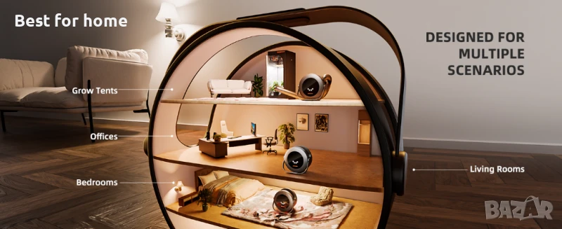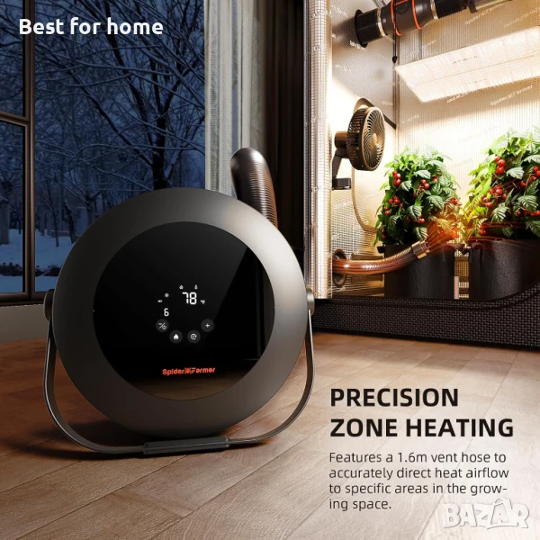Гъвкав дизайн на пространството: Преносимият нагревател е идеален за различни среди за отглеждане и закрити пространства, като например палатки за отглеждане, спални, офиси и дневни. С хоризонтално и вертикално разположение, за да отговаря на вашето пространство.