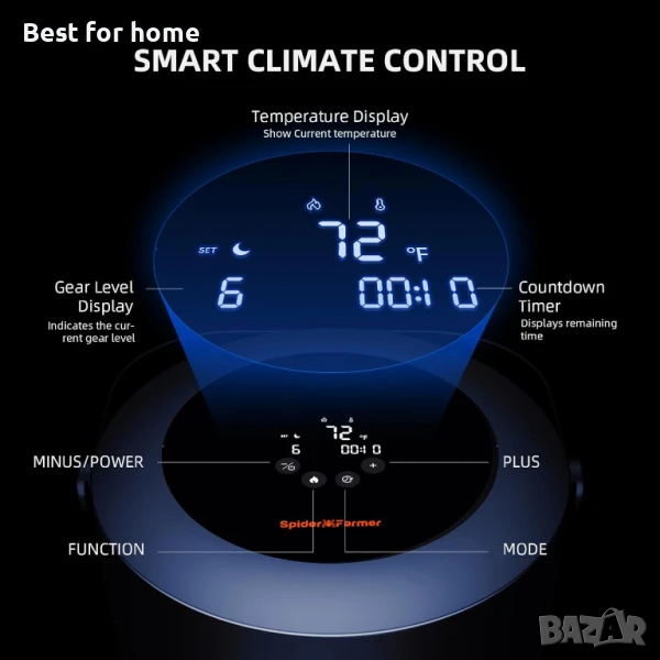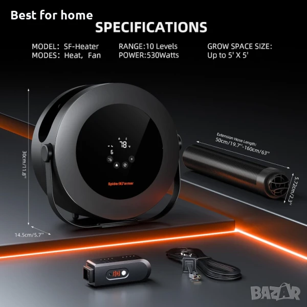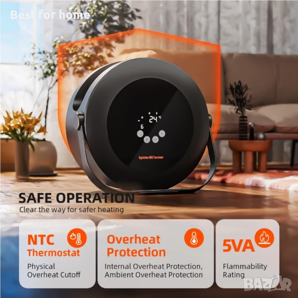 Отоплител Spider Farmer, преносим 530W нагревател с интелигентен контрол на температурата, 4 режима