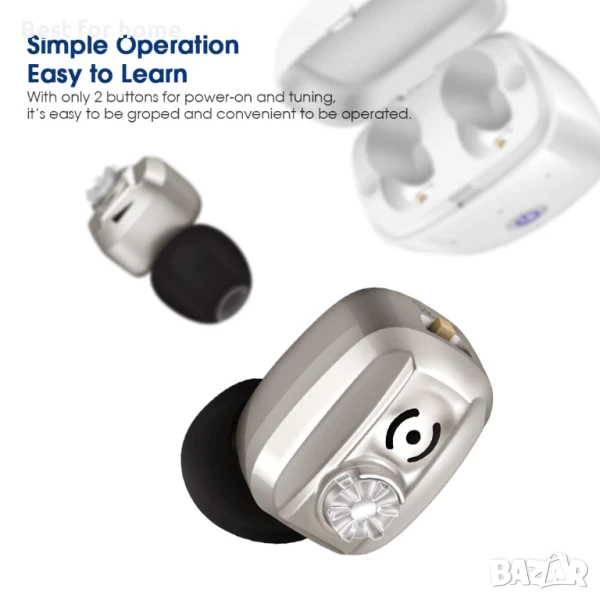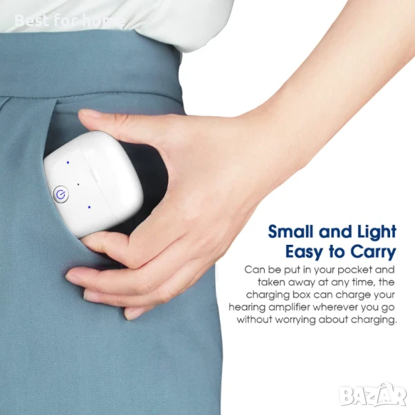 Дълга продължителност - 4 часа зареждане, 20 часа слушане. Предлага се с безжична кутия за зареждане, с която можете да зареждате слуховия си апарат по всяко време.