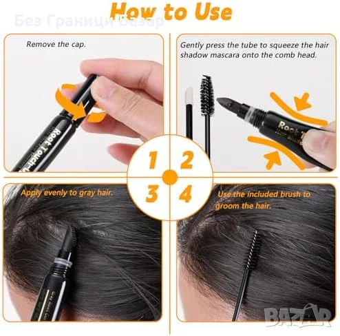 Мигновено прикриване на бели коси, корени, брада, вежди и мигли