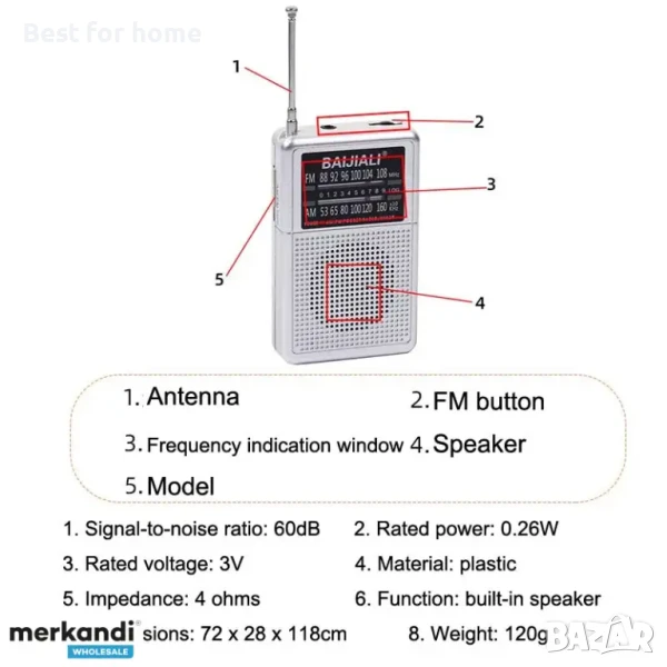 Портативно, мини AM / FM радио с вграден двулентов високоговорител