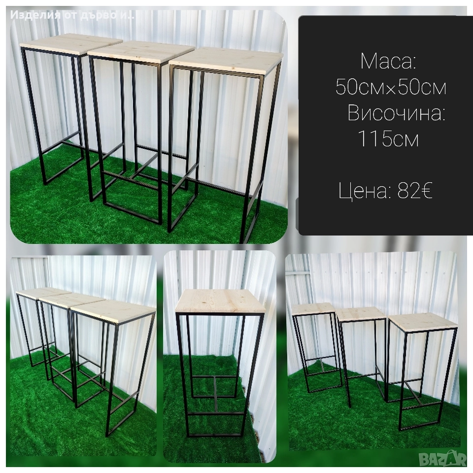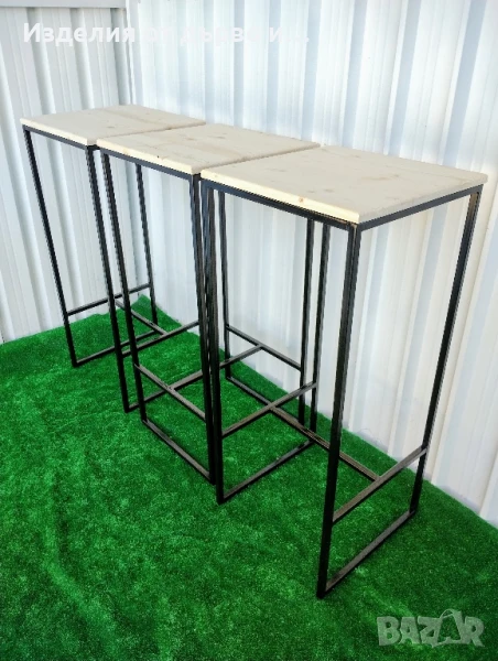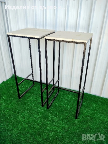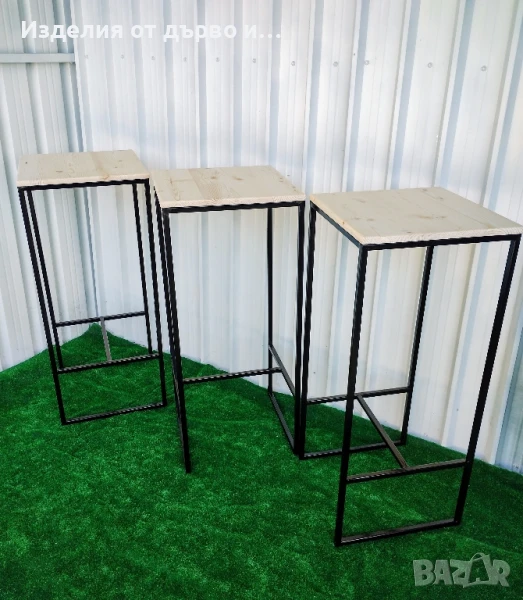 Квадратни бар маси от дърво и метал заварена без сглобяване