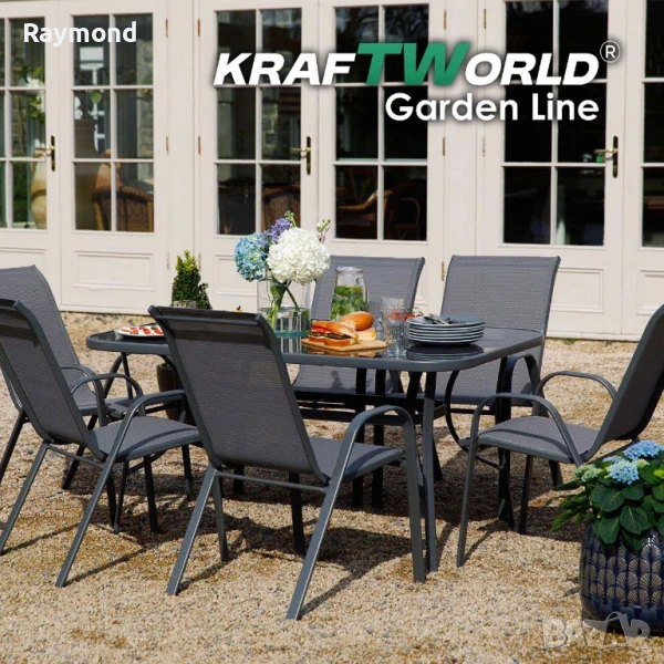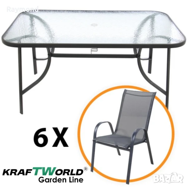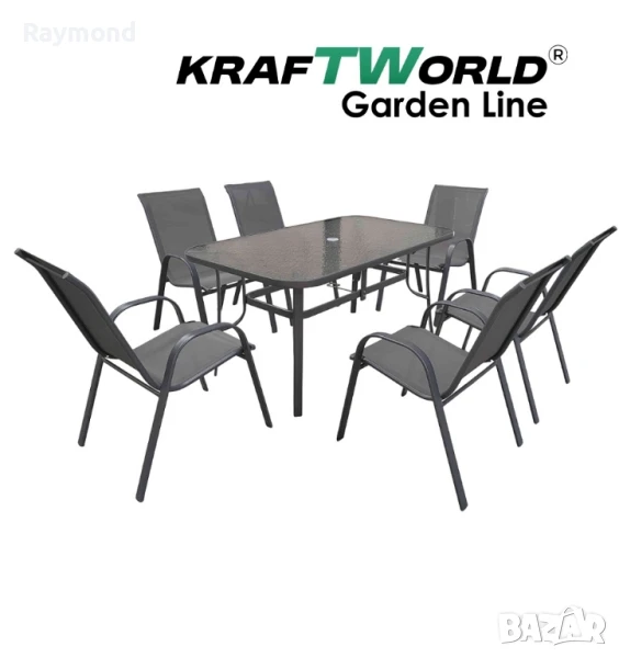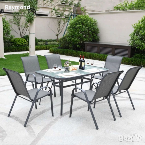 ✅ Комплект за 6 души – маса със стъклен плот и 6 стола ✅ Здрава метална конструкция с UV защита ✅ Удобни текстилни седалки, устойчиви на влага ✅ Лесна поддръжка – идеален за външна употреба ✅ Размери маса: 150x90x71 см | Столове: 54×95 см ☀️ Внесете комфорт, стил и функционалност във вашата градина или тераса с този елегантен градински комплект от 7 части – включващ стабилна маса със стъклен плот и 6 удобни стола с текстилна седалка. Създаден за дългосрочна употреба на открито, този комплект съчетава здравина, издръжливост и съвременен дизайн. 🔸 Масата е с правоъгълна форма и размери 150 x 90 x 71 см. Рамката е изработена от прахово боядисан метал, а плотът – от термообработено стъкло, устойчиво на атмосферни влияния и UV лъчи. Централният отвор позволява добавяне на чадър при нужда. 🔸 Столовете са с лека, но стабилна метална конструкция и седалка от UV-устойчив текстилен плат в кафяв цвят. Облегалката е проектирана с лек наклон за по-голям комфорт при седене. Подходящи са както за външна, така и за вътрешна употреба. 💧 Поддръжката е изключително лесна – достатъчни са топла вода, мека кърпа и неагресивен препарат. Комплектът е устойчив на влага, не избледнява и не се нуждае от специална защита през сезона. 📦 Комплектът включва: 1 маса с термо стъклен плот – 150 x 90 x 71 см 6 метални стола с текстилна седалка – 54 x 95 см 🌿 Подходящ за градини, веранди, балкони, заведения и всяко външно пространство, където стилът и удобството вървят ръка за ръка. ✨ Избери надеждно качество и съвременен дизайн – поръчай сега и създай перфектната зона за отдих!