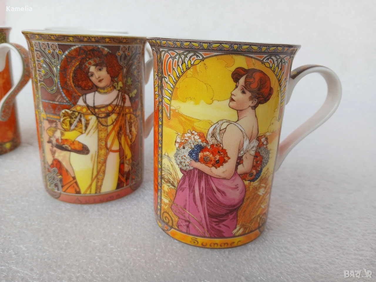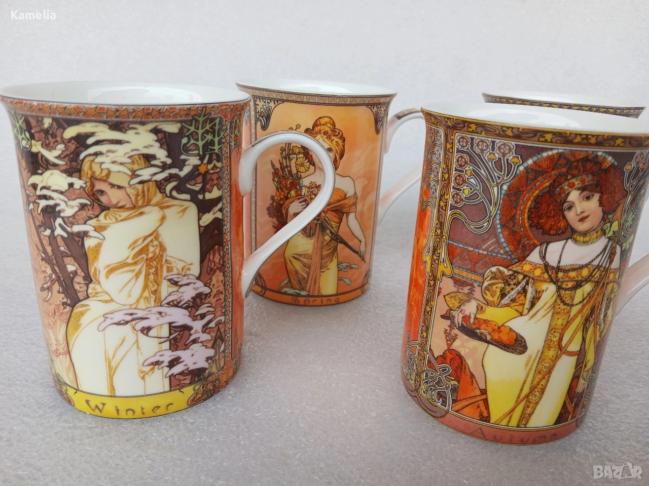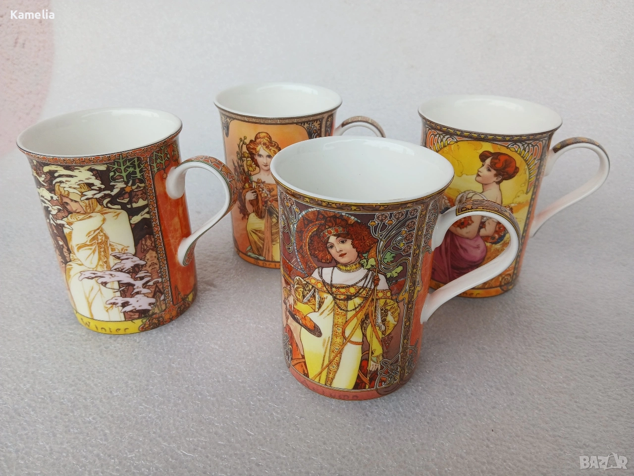 Комплект от 4 броя чаши Димс-92 от фин костен порцелан 4 Сезона - зима, пролет, лято, есен. Цена: 20€/за всичките. Нови.