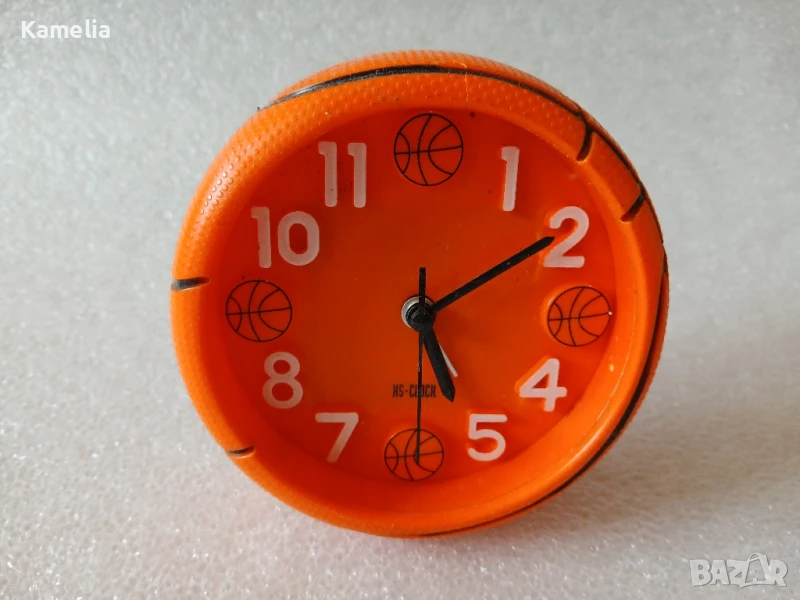 Настолен часовник с баскетболни мотиви. Работи с една батерия АА.