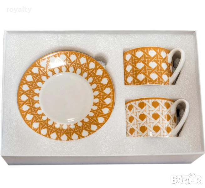 Луксозен сервиз за топли напитки, чай или кафе – чаша с чинийка, в красива картонена кутия.