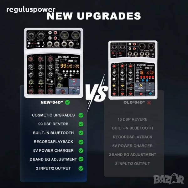 Смесителен пулт BMG-04D DSP99 UPGRADE, DJ Mixer, Bluetooth USB Player, EQ 2 Band,