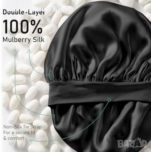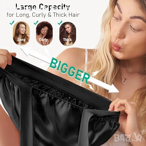 Нова Шапка за къдрава и дълга коса 100% коприна с ластик черна за жени