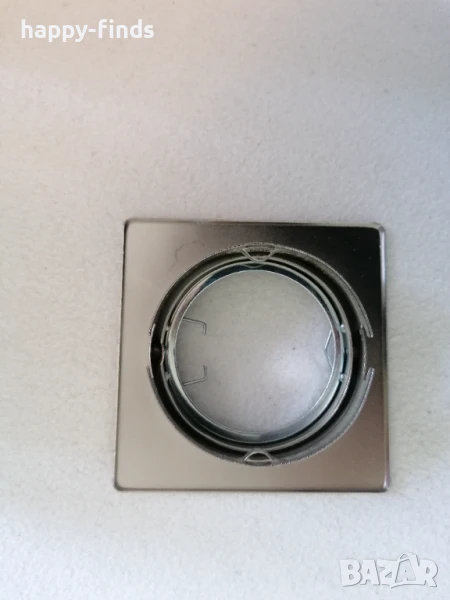 Продавам 3 броя нови метални рамки за вграждане на LED/халогенни лампи тип GU10, подходящи за монтаж в окачени тавани (гипсокартон и др.).