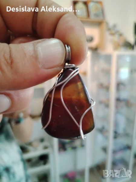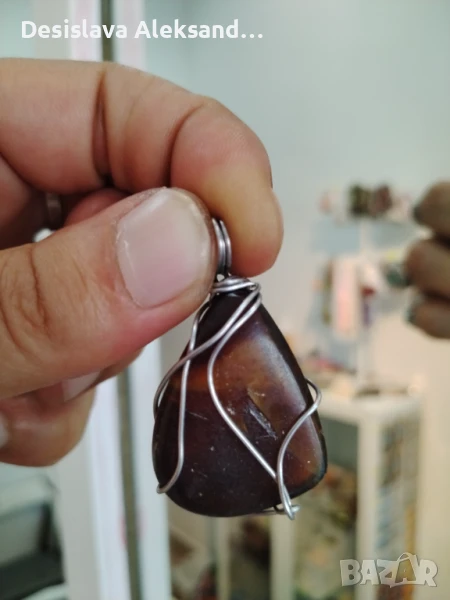 Продавам висулка със естествен кехлибар от Индонезия, моя ръчна изработка. Цена: 35 лв.