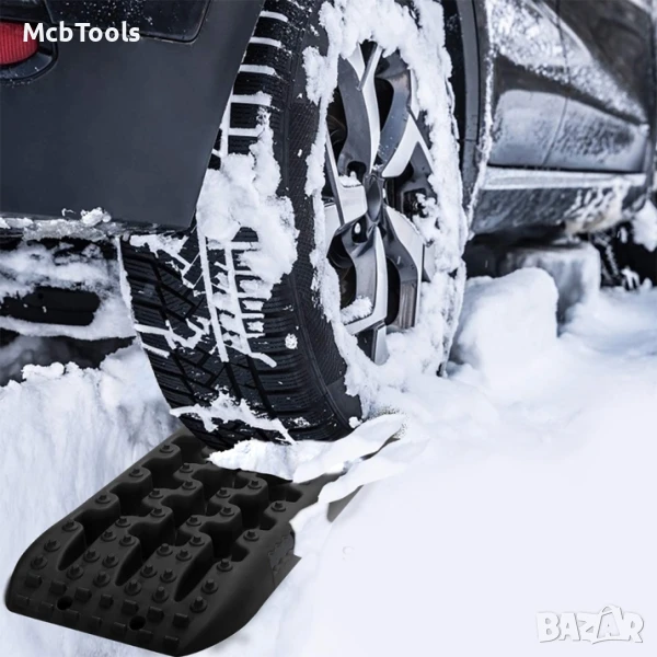 - Комплект от 2бр подложки постелки против буксуване за автомобилни гуми за допълнително сцепление.