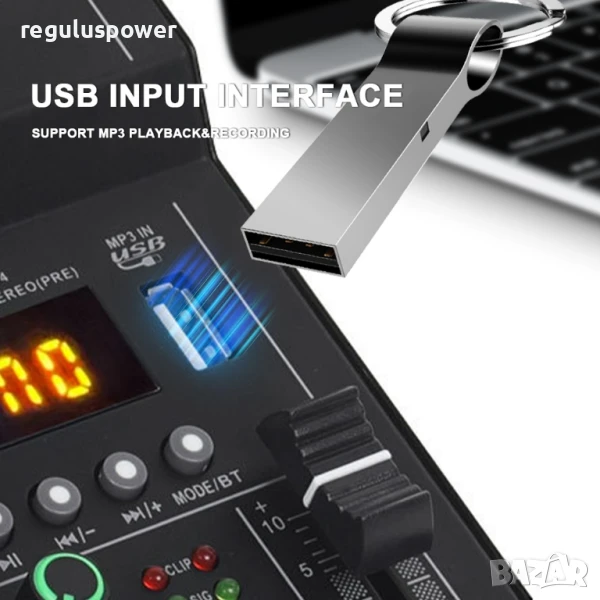Смесителен пулт 4 канален RP-F4 A, Bluetooth,USB Player, DJ Mixer, EQ 2 Band