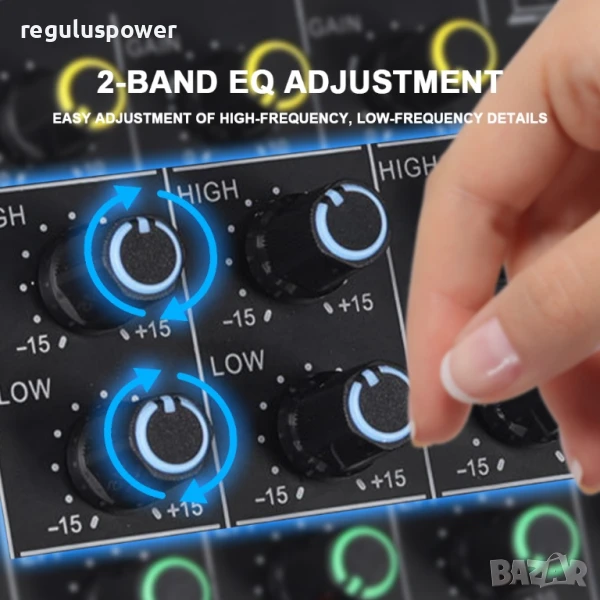 Вграден еквилайзер за всичките канали, плюс еквилайзер за микрофоните,