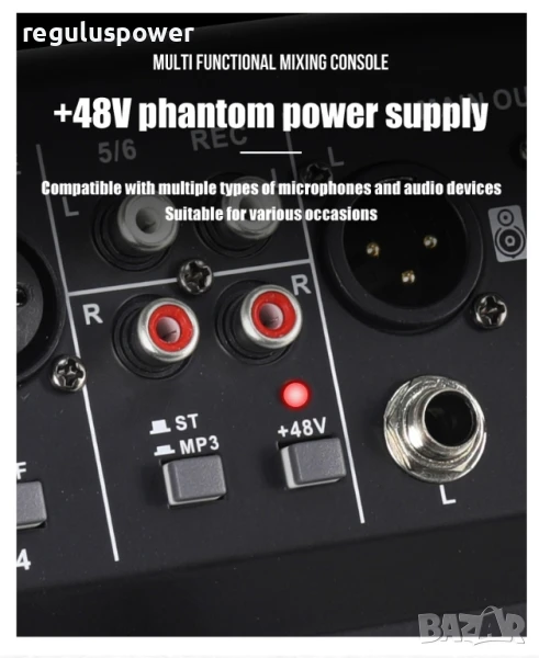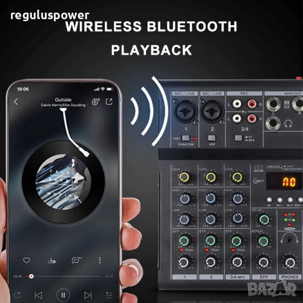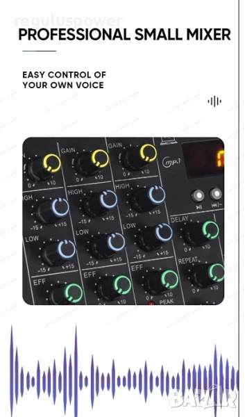 крайно стъпало, *възможно е включването на два броя уредби или крайни стъпала, максималния изходен сигнал е 4V, около пет пъти по-силно от вашия телефон или лаптоп, използвайте жична или безжична връзка с достъпния bluetooth от най-нова версия, с най-доброто качество на сигнала, използвайте вградения предусилвател и звукова карта за да пуснете и да усилите вашите слушалки на безумно високо ниво, използвайте адаптер 12 волта за вашия автомобил и направете караоке в природата посредством безжични микрофони, коригирайте посредством вградения двулентов еквилайзер, плюс минус 5 db, регулирайте силата и честотата на микрофоните посредством отделен еквилайзер в конзолата, ехо ефекти, диодна скала, удобен и компактен корпус, прецизни потенциометри, вграден цифров дисплей, пауза, напред и назад, предишна следваща песен, дигитално усилване и намаляване посредством задържане на копчетата за смяна на песните, музиката с вас, музиката по най-лесния и опростен начин!