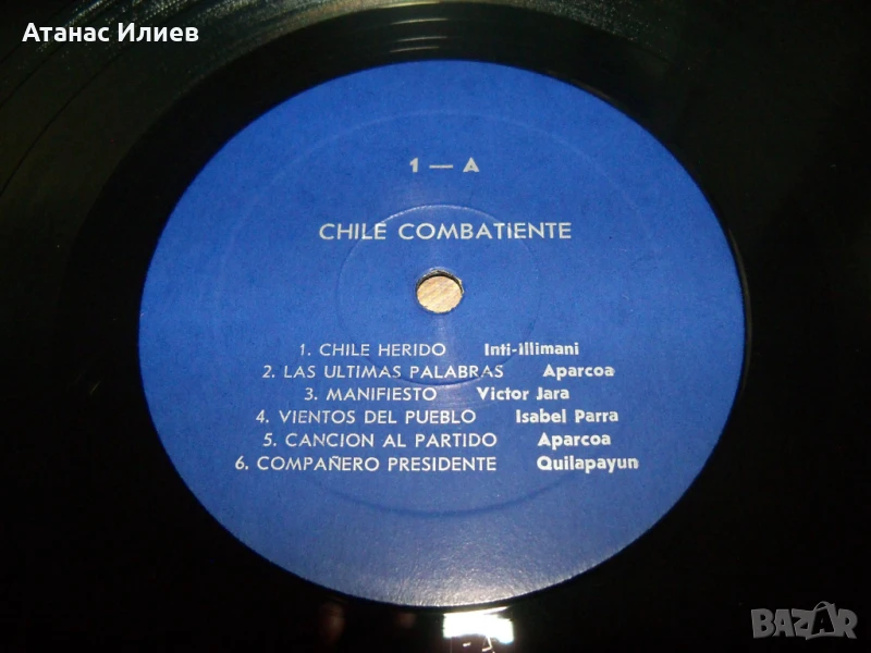 Nueva canción chilena - Нова чилийска песен е движение и жанр в чилийската музика, включващи силни политически и социални теми, вдъхновени от традиционната или фолклорна музика на Чили. Движението се разпространява в цяла Латинска Америка през 60-те и 70-те години на миналия век. Настоящият албум е озаглавен "Chile combatiente" - Чили се бори. Плочата е прослушана и е в отлично състояние, рядко се намира.
