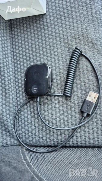 Bluetooth рисийвър за кола, който се захранва през USB от зарядно за кола. Излъчва сигнал за радиото и се връзва през bluetooth към вашия телефон. Има вграден микрофон.