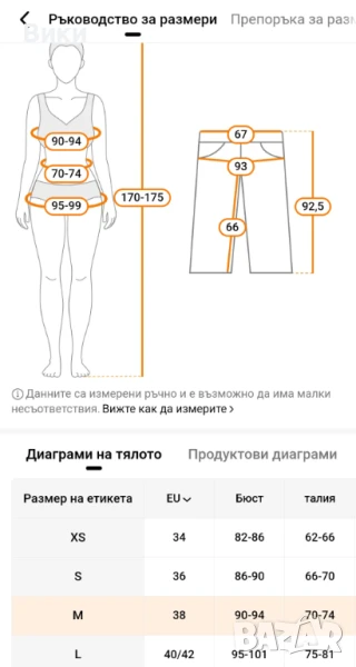 Има приложена снимка с инфо за размера.