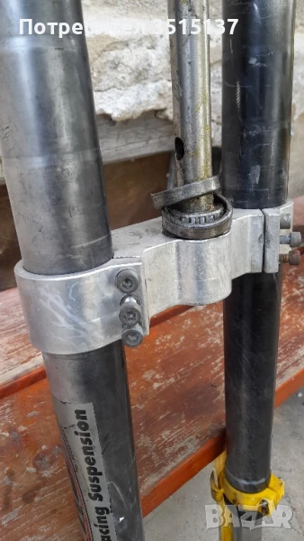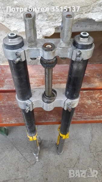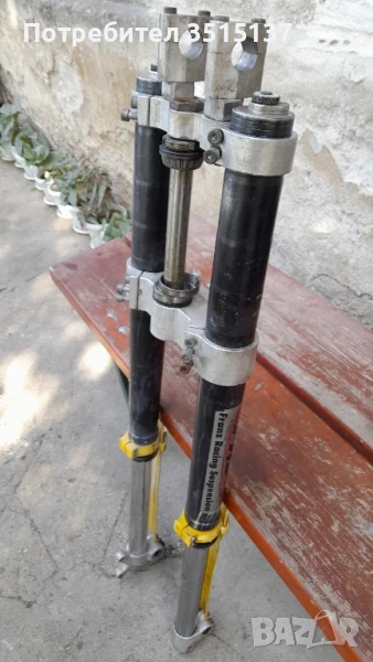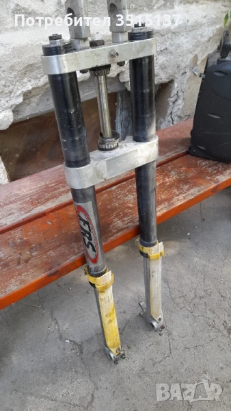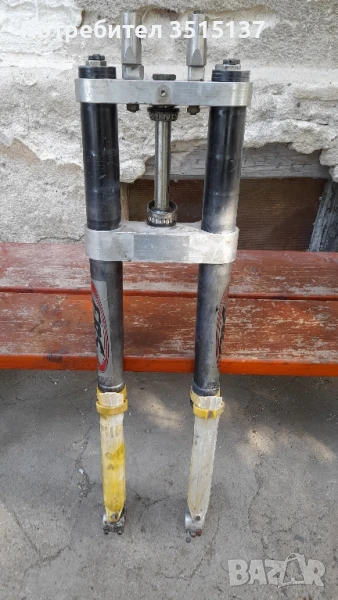 комплект с трипътници , иска обслужване . Добро състояние не коментирам цена . Предна вилка тунинг Wp