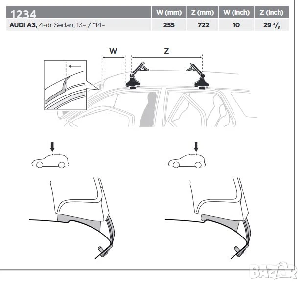Багажник напречни греди THULE рейки за AUDI A3 седан след 2013 → Обява 51153855