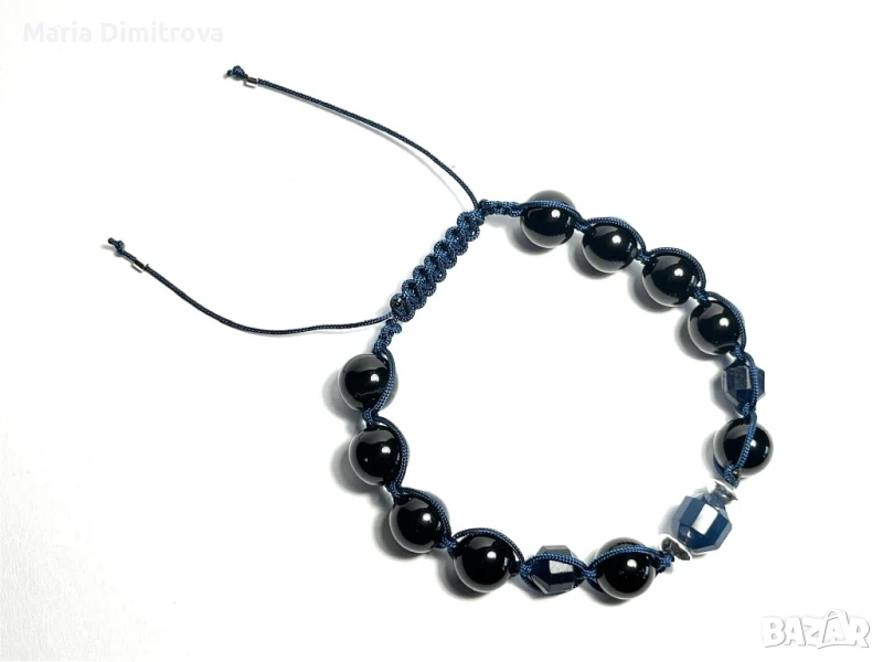 5 Снимка: Мъжка гривна със Сапфир фасет 10мм, Сапфир фасет 8мм, Оникс 10мм, сребърни разделители диск 925, сребърни стопери кримп 925, дължина 17-27см - 29лв