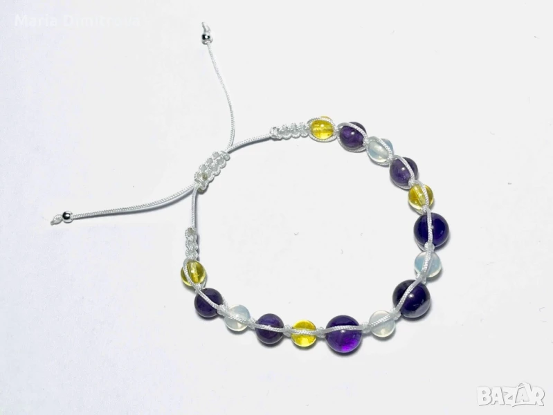 6 Снимка: Женска гривна с Аметист 8 мм, Аметист 6мм, Цитрин 6мм, Опалит 6мм, посребрени метални стопери, дължина 14-25см - 22 лв