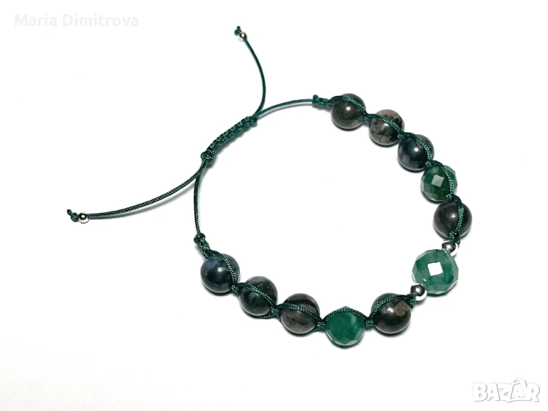 3 Снимка: Женска гривна с Изумруд фасет 10мм, Изумруд фасет 8мм, Африкански опал 8мм, сребърни мъниста 925, сребърни стопери 925, дължина 11-22см- 29лв