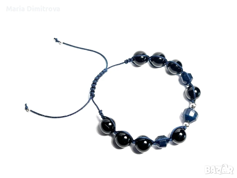 4 Снимка: Женска гривна със Сапфир фасет 10мм, Сапфир фасет 8мм, Оникс 10мм, сребърни мъниста 925, сребърни стопери 925, дължина 12,5-25см - 26лв