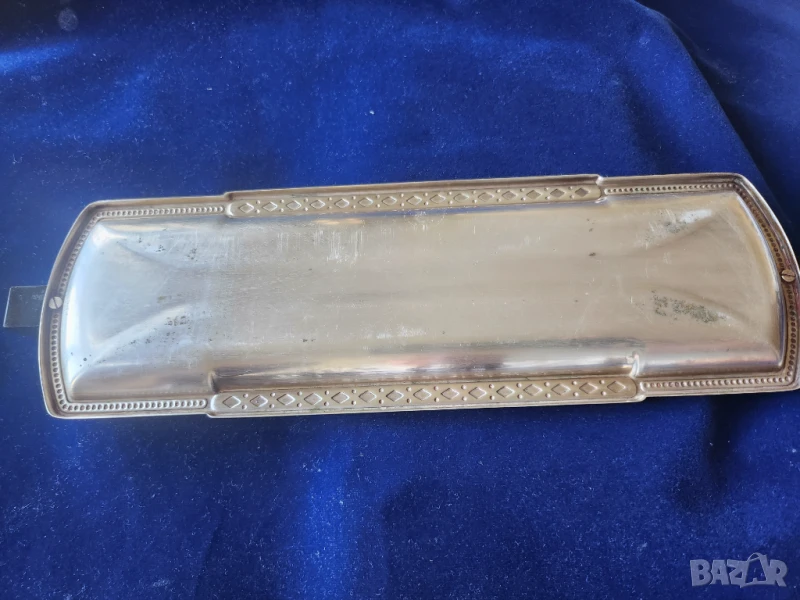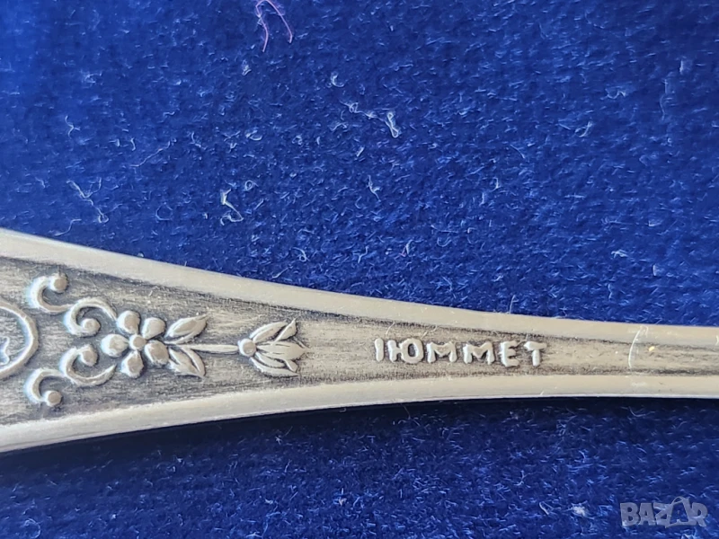 Заедно с 3 малки лъжички ( от посребрен мелхиор) и поднос за 3-те , също посребрен от мелхиор.