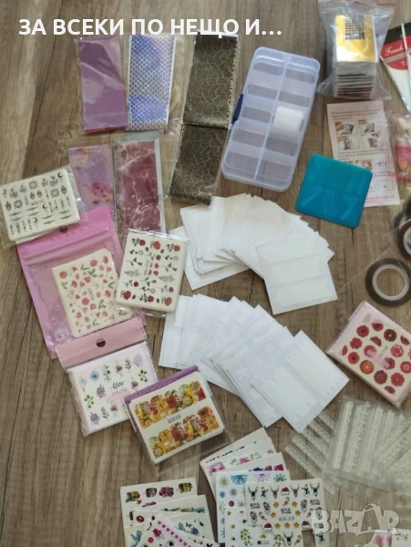 Шлайф шапките за ел. пилата са продадени. За останалите неща цената е 45.90 лева. Комплекта съдържа: 4 бр пили 100/180, 84 бр хартиени форми за изграждане на маникюр, 6 броя двойни апликатори, много ваденки (105 листа+ 5 бр набутани), 21 листа релефни стикери, 58 броя декоративно фолио 20х4.см, кутийка - органайзер, 58 броя фолио ленти 1 мм, с дължина 20 метра, 43 листа ленти за маникюр различни форми, 18 листа за френски маникюр , 1 брой шаблон печат.