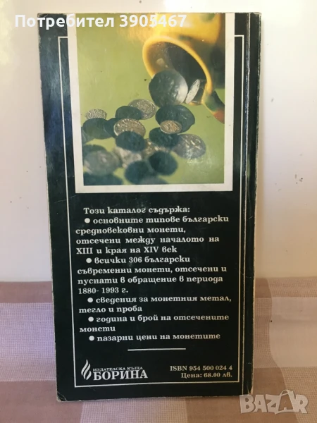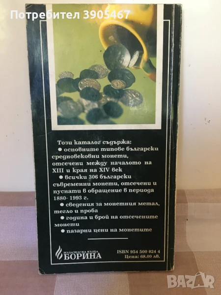 Каталогът е в отлично състояние. Издаден в София в 1993г. Съдържа информация за средновековни българси и съвременни български /до 1993г./ монети, като показва снимки, емисии, тираж и цени /валидни за 1993 г./