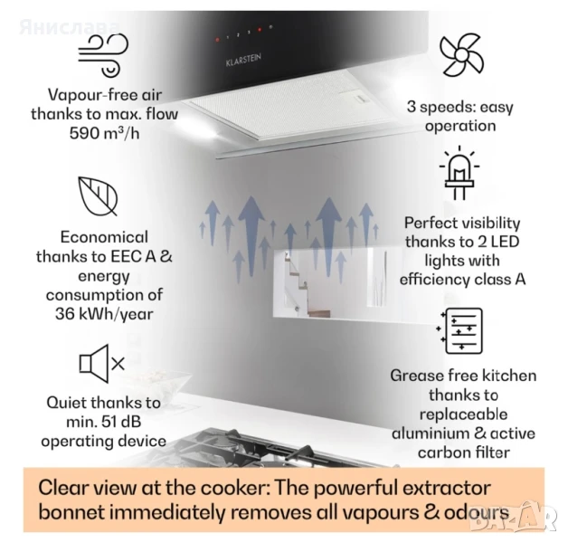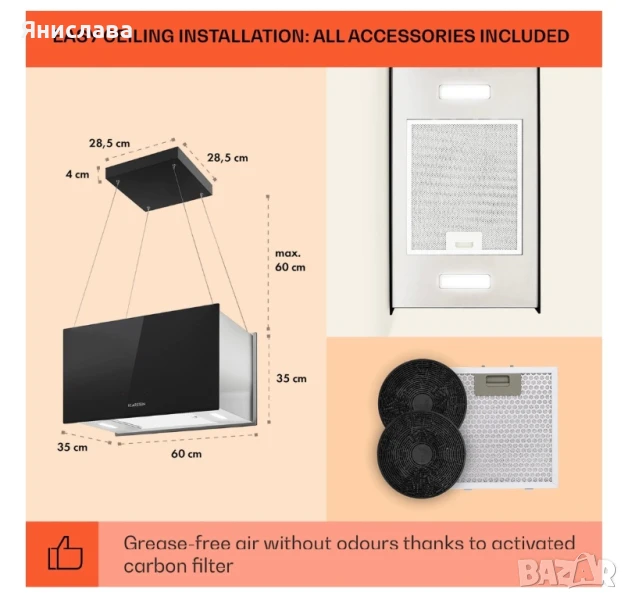 Чист въздух: миещ се алуминиев маслен филтър и филтър с активен въглен против миризми
