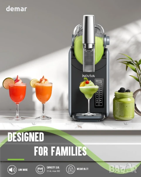 INOVIVA машина за скрежина слуши за дома, 2.0 л, не е необходим лед, 5 режима
